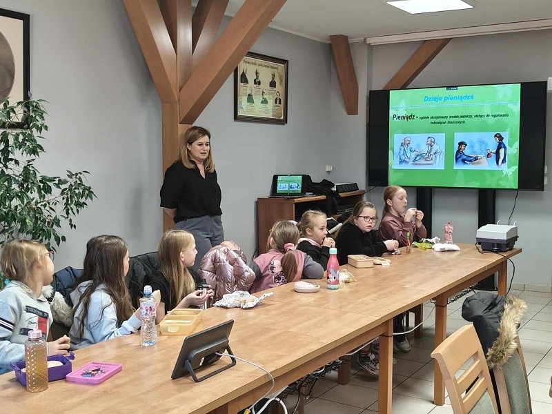 Podczas wizyty dzieci miały również okazję zobaczyć pomieszczenia bankowe, które na co dzień nie są dostępne dla klientów, a także zadawać pytania pracownikom banku. Na zakończenie dzieci otrzymały drobne upominki.