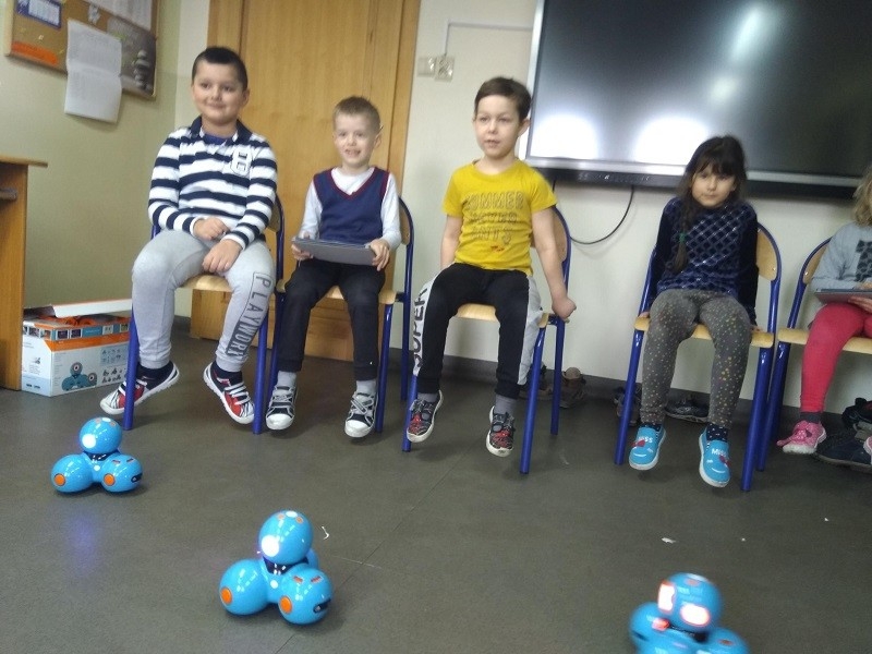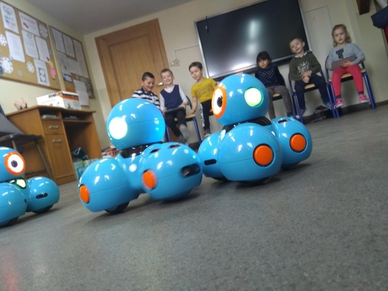 W marcu, podczas ostatnich dwóch zajęć, przedszkolaki zapoznały się z naszymi robotami. Była to miłość od pierwszego wejrzenia, niektórzy przytulali roboty, inni rozpoczęli od zapoznania się z nimi. Na początku wszyscy nauczyli się programować kolory robota, poznawali dźwięki, jakie roboty mogą wydawać oraz sprawdzili, jakie tańce mogą wykonać Dash'e. Kolejną czynnością była nauka sterowania robotem.