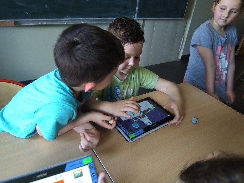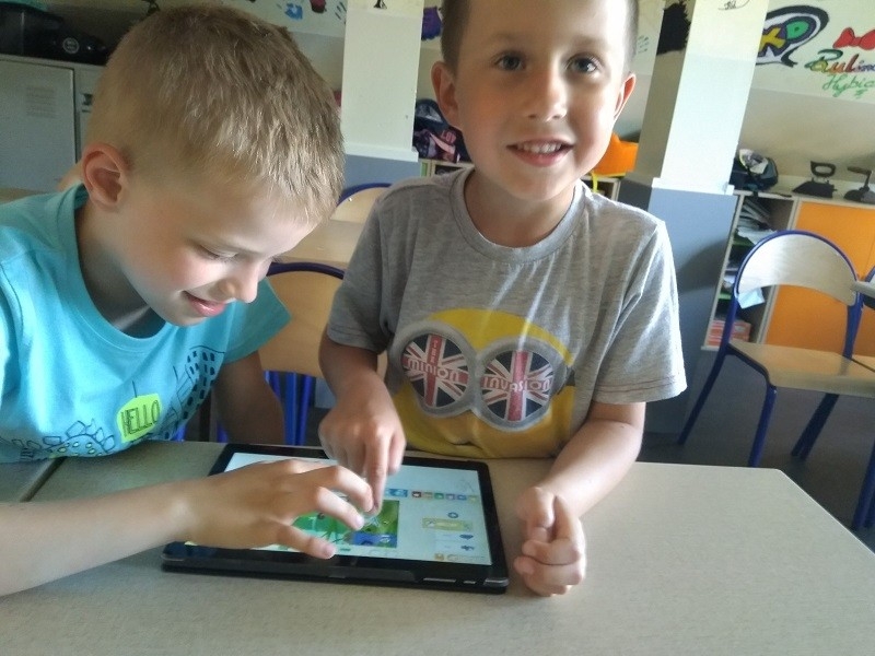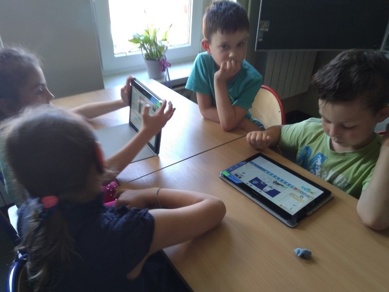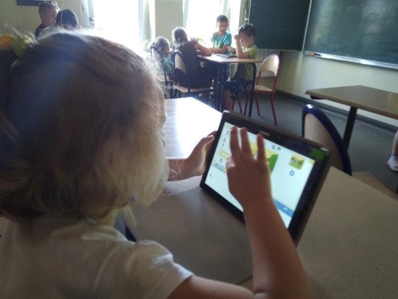 Podczas ostatniego w tym roku szkolnym spotkania w ramach zajęć "Mistrzowie Kodowania", które odbyło się 4 czerwca przedszkolaki z grupy "Tygrysów" poznały kolejną aplikację do kodowania. Na początku dzieci zapoznały się z aplikacją "Scratch Jr", nauczyły się dodawać duszki, tła oraz poznały znaczenie podstawowych klocków w programie.