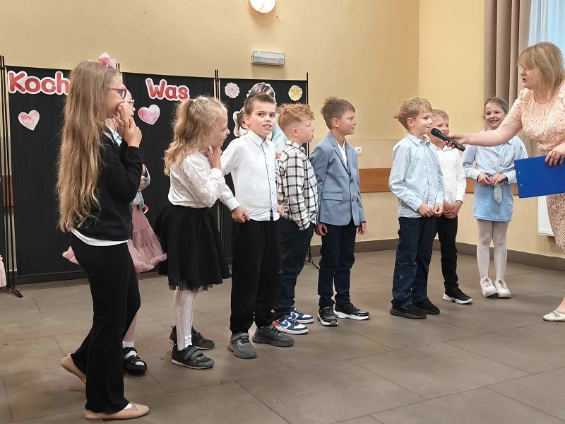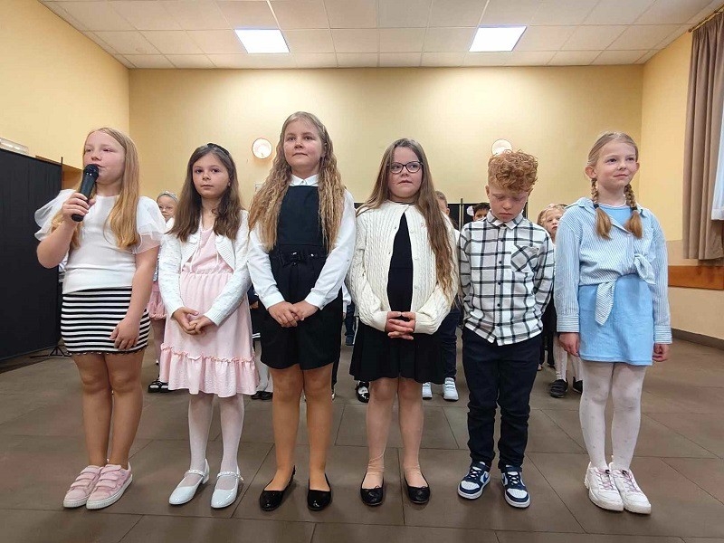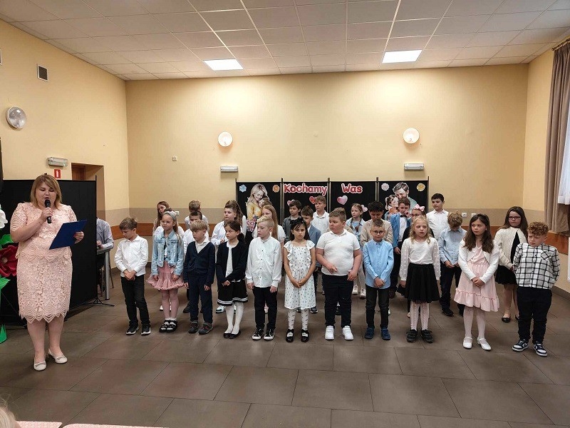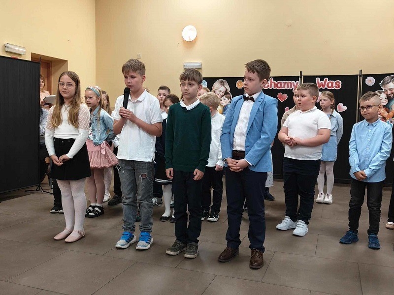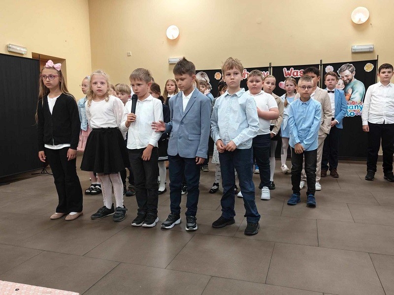 Dnia 30.05.2025 r. uczniowie klas 1-3 zaprosili swoich rodziców na uroczystość z okazji Dnia Rodziny. Dzieci wystąpiły i pokazały się z jak najlepszej strony. Nie zabrakło wierszy, piosenek, a także tańców. Gromkie "Sto lat" pokazało jak najmłodsi kochają swoich najbliższych. Dzieci wręczyły także rodzicom dyplomy z ich portretami.