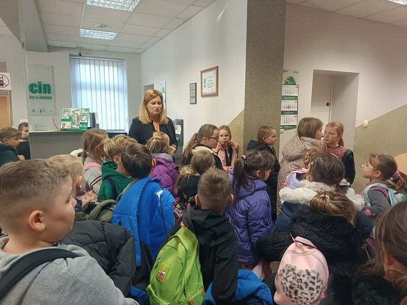 W dniu 19 listopada 2025 r. uczniowie klas I-III wraz z wychowawcami odwiedzili Bank Spółdzielczy w Jarocinie. Celem wizyty było zapoznanie dzieci z podstawowymi pojęciami dotyczącymi bankowości, funkcjonowaniem banku, rolą oszczędzania i roli, jaką odgrywa on w codziennym życiu. Na miejscu dzieci zostały serdecznie powitane przez pracowników banku, którzy przygotowali dla nich prezentację na temat pieniędzy, oszczędzania oraz sposobów korzystania z usług bankowych.