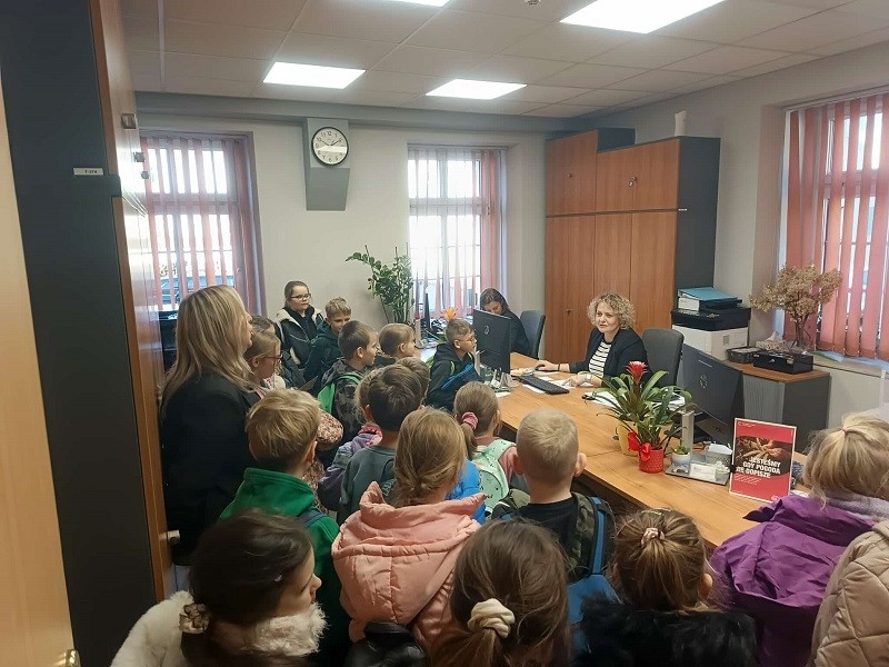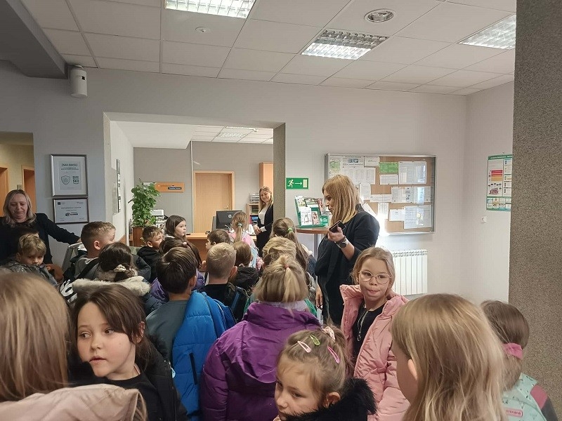 Podczas wizyty dzieci miały również okazję zobaczyć pomieszczenia bankowe, które na co dzień nie są dostępne dla klientów, a także zadawać pytania pracownikom banku. Na zakończenie dzieci otrzymały drobne upominki.