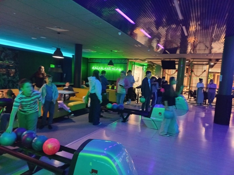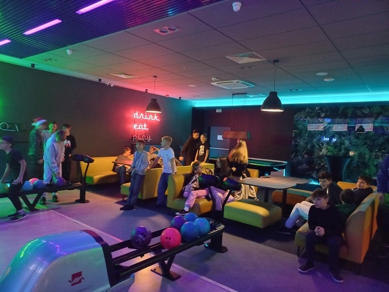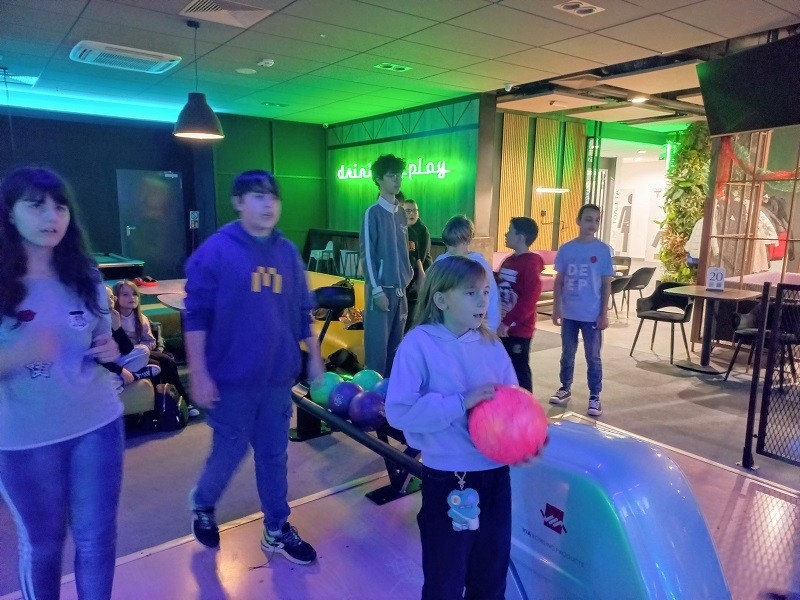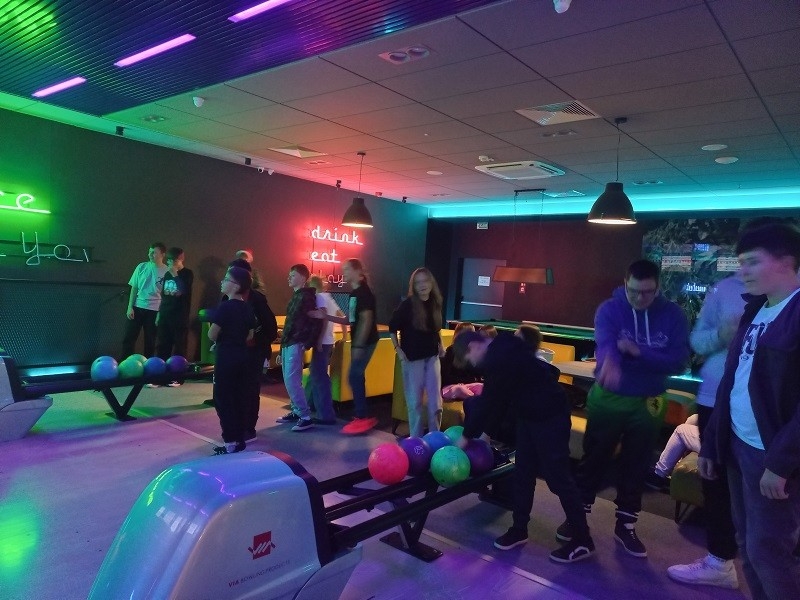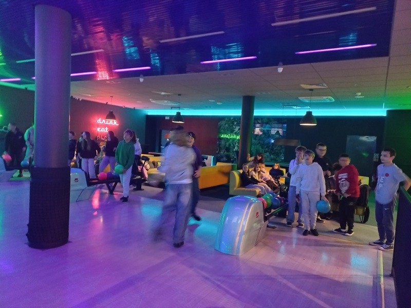 Koledzy i koleżanki dopingowali innych, aby udało się wyrzucić "strike'a", czyli zbić 10 kręgli za pierwszym rzutem lub "spare'a", czyli zbić wszystkie kręgle w dwóch rzutach. Był to dzień pełen emocji, podczas którego wszyscy świetnie się bawili. Sponsorem wyjazdu była Rada Rodziców oraz Stowarzyszenie Edukacyjne "Nasza Szkoła".