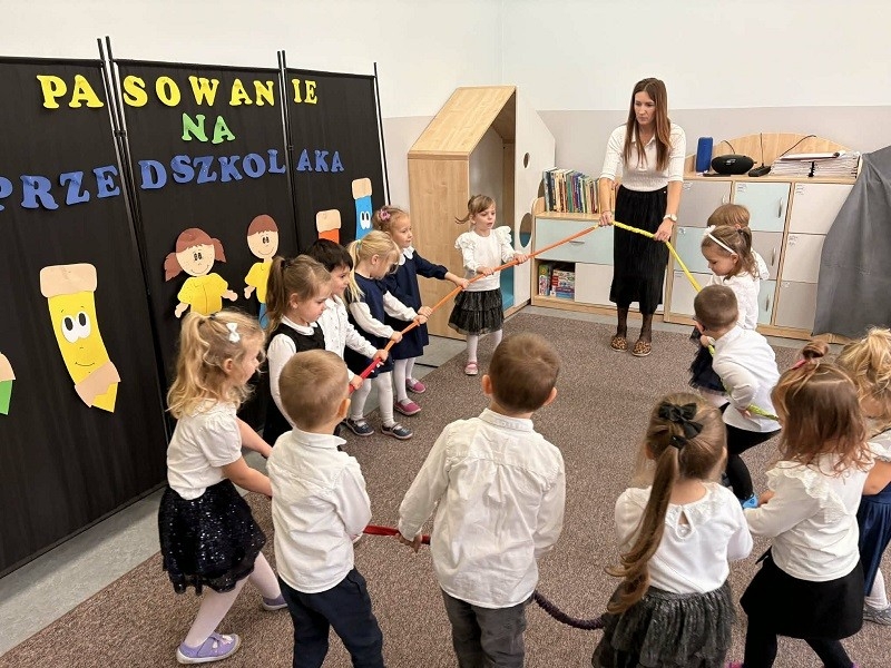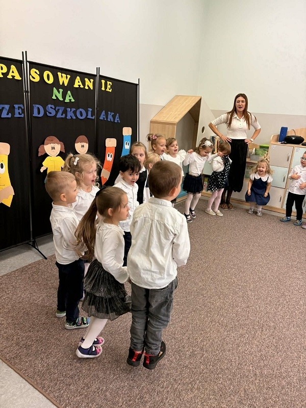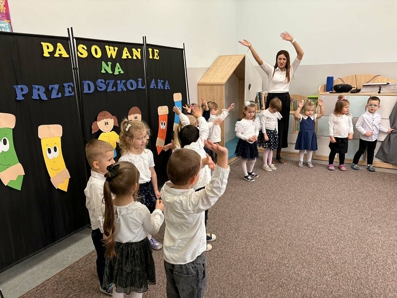 Śpiewały piosenki, recytowały wierszyki oraz pokazały, jak pięknie potrafią tańczyć. Choć u niektórych pojawiła się trema, każde dziecko spisało się znakomicie. Najważniejszym momentem uroczystości było pasowanie czarodziejskim ołówkiem, po którym każdy z „Misiaków” oficjalnie stał się przedszkolakiem. Dzieci otrzymały również pamiątkowe dyplomy oraz upominki – czarodziejskie kredki kryjące w sobie słodkie niespodzianki. Po części artystycznej na dzieci i rodziców czekał słodki poczęstunek. Był to dzień pełen radości, wzruszeń i niezapomnianych chwil, który na długo pozostanie w pamięci naszych najmłodszych.