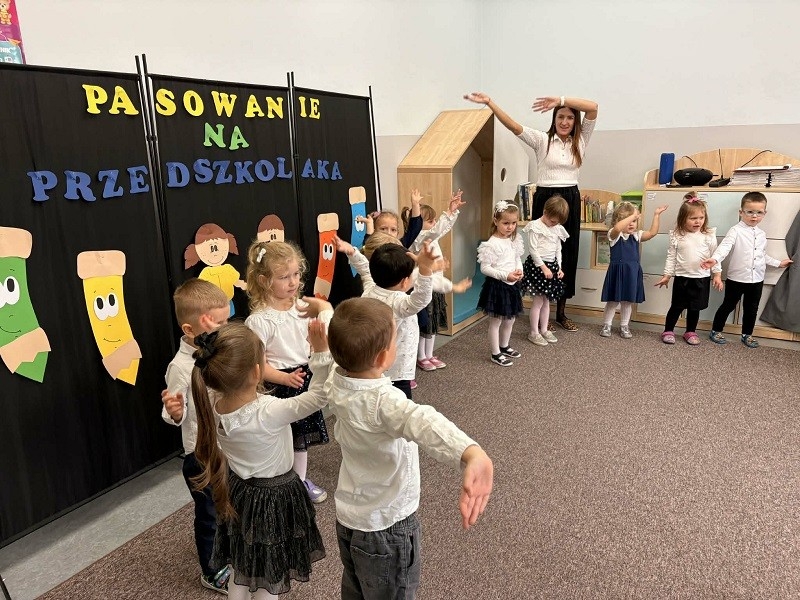 Dnia 14 listopada w naszej placówce odbyło się wyjątkowe wydarzenie – Pasowanie na Przedszkolaka w grupie Misie. Tego dnia wszystkie dzieci przyszły do przedszkola odświętnie ubrane, z lekkim dreszczykiem emocji, ponieważ było to ich pierwsze ważne wystąpienie przed publicznością. Wśród zaproszonych gości byli rodzice oraz Pani Dyrektor, Beata Fengler. Przedszkolaki zaprezentowały krótki, ładnie przygotowany program artystyczny.