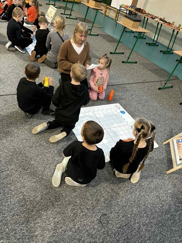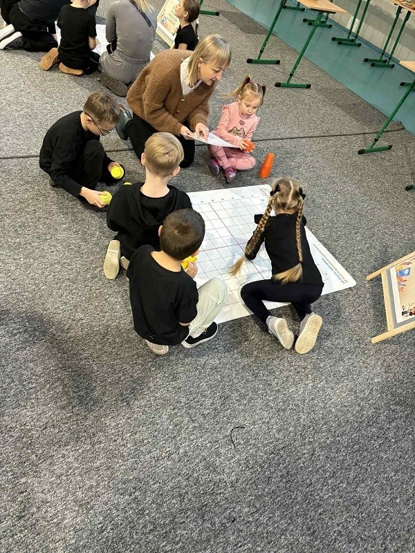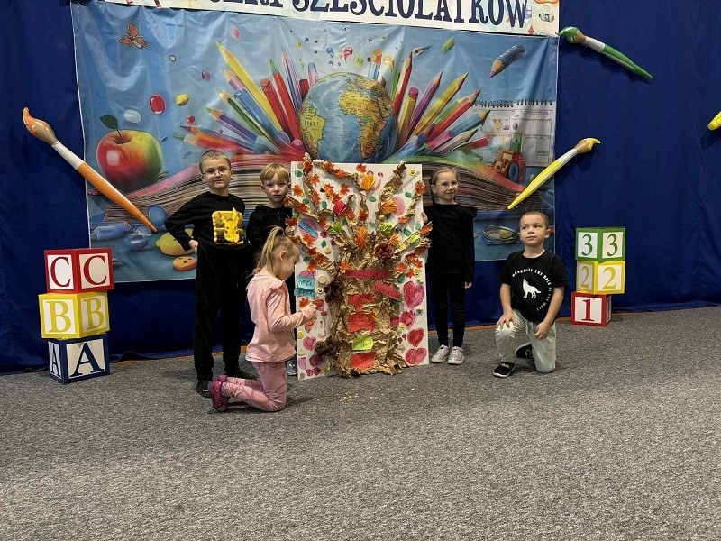 W dniu 21.11.2025r. w Szkole Podstawowej nr 3 w Jarocinie odbył się wyjątkowy konkurs „Potyczki sześciolatków”, podczas którego dzieci miały okazję sprawdzić swoje umiejętności. W zabawie wzięło udział 6 drużyn z różnych przedszkoli. Konkurs rozpoczął się od kodowania na dywanie. Następnie każda grupa otrzymała arkusz i tworzyła drzewo życzliwości.