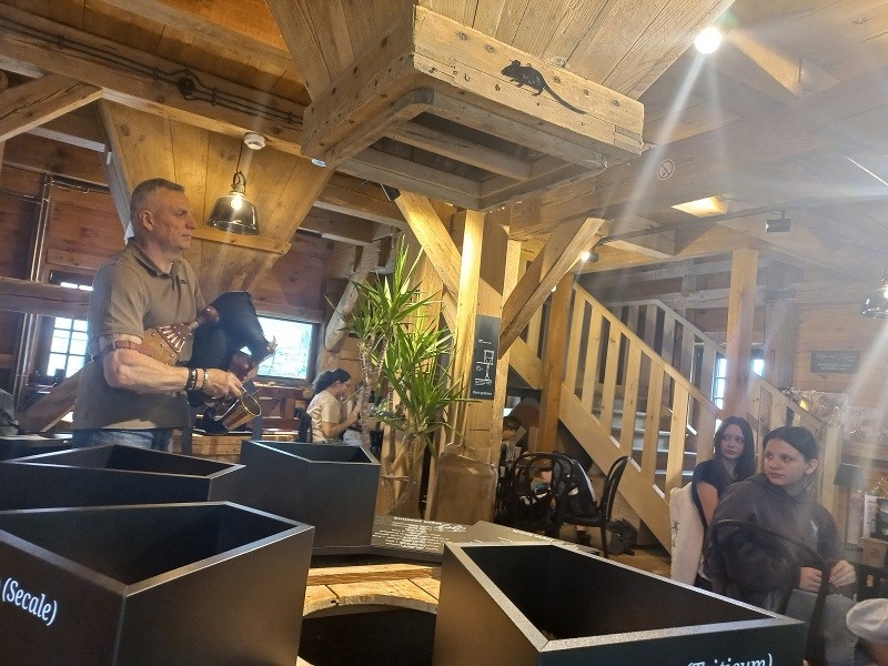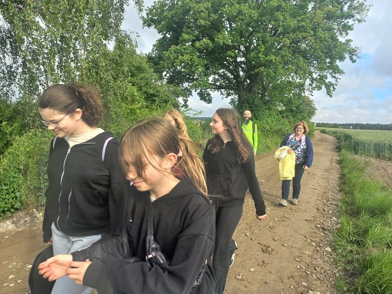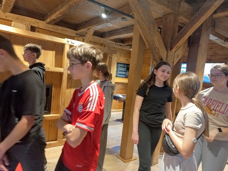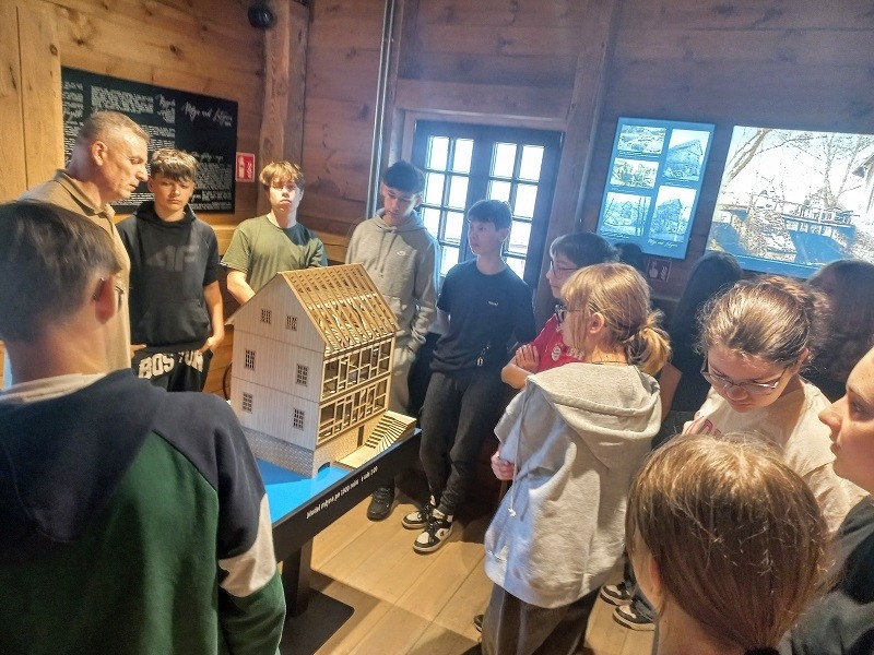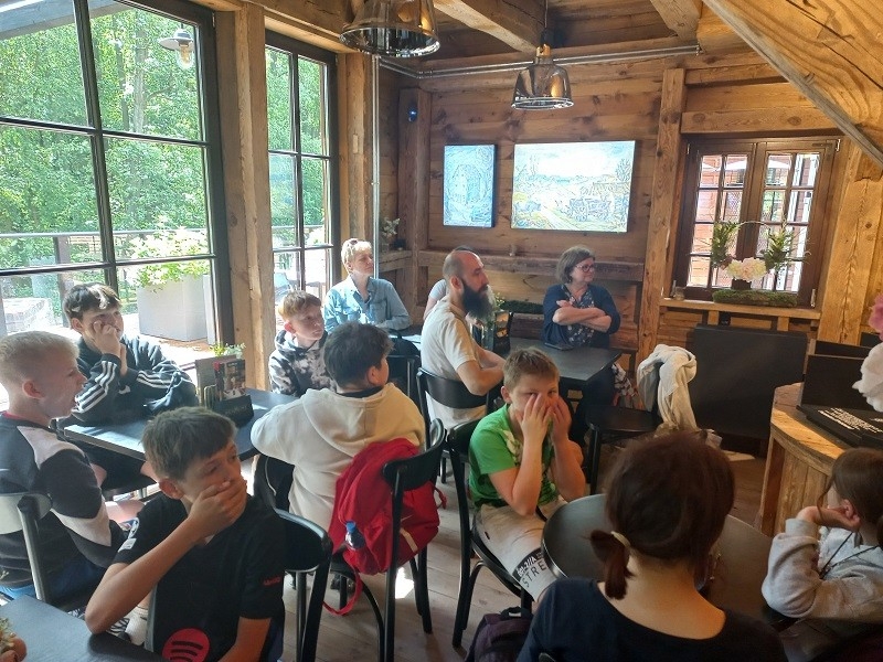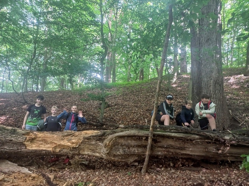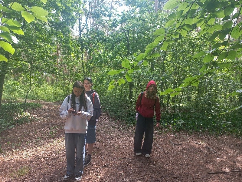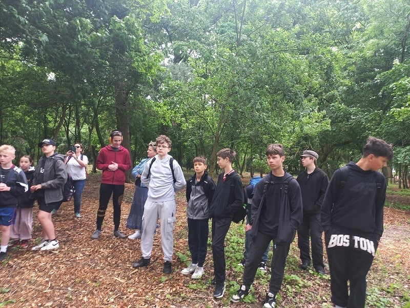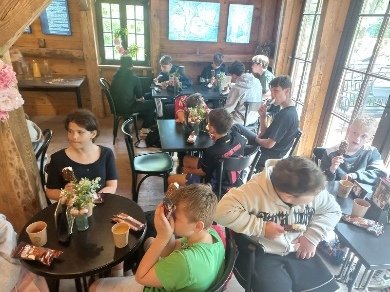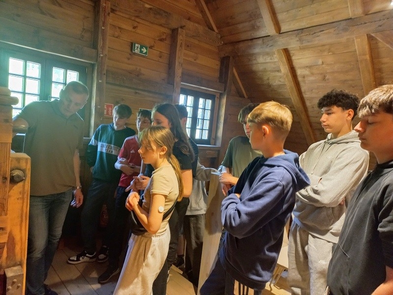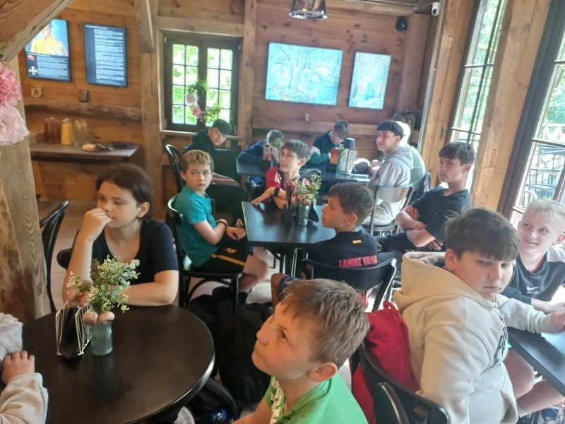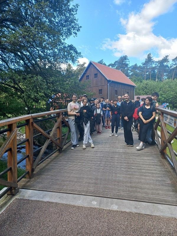 Następnie udaliśmy się do Woli Książęcej, gdzie wysłuchaliśmy ciekawostek o pałacu w Słupi. Po krótkim odpoczynku udaliśmy się leśną drogą, wiodącą wzdłuż Lutyni i przez urokliwe polany. Śpiew ptaków, obcowanie z naturą sprawiło, że mimo przebytych kilometrów, ochoczo podążaliśmy do głównego celu naszej wyprawy - Młyna nad Lutynią w Wilkowyi. W młynie mieliśmy okazję usłyszeć jego historię i zobaczyć jak kiedyś działał młyn, który obecnie jest uważany jako jeden z najcenniejszych zabytków i obiektów turystycznych Ziemi Jarocińskiej. Na strudzonych wędrowców czekał również słodki poczęstunek oraz pokaz gry na dudach. Po regeneracji sił na pobliskiej łące, wróciliśmy do szkoły.