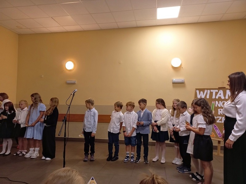 Dnia 1 września 2025 roku, nadszedł moment, na który część uczniów czekała z niecierpliwością i gotowością do nowych wyzwań, inni z żalem powrotu do obowiązków i pewnych ograniczeń, czyli uroczyste rozpoczęcie roku szkolnego 2025/2026. Uroczystość, która zgromadziła uczniów, rodziców, nauczycieli, sympatyków szkoły rozpoczęła się od wspólnego odśpiewania hymnu narodowego. Następnie Kornelia, Ola i Jasiu zaprezentowali się w krótkiej część artystycznej.