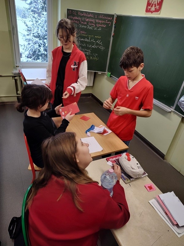 Walentynki to dzień miłości i przyjaźni. Dla uczniów naszej szkoły ten dzień stał się okazją do wspólnej zabawy i pokazania, jak dobrze i wesoło jest nam razem. W tym dniu nasza społeczność szkolna ubrała się w czerwone elementy garderoby. Zorganizowano „pocztę walentynkową”. Wszyscy, którzy chcieli przekazać życzenia swoim sympatiom, wrzucali kartki walentynkowe do specjalnie przygotowanego pudełka.