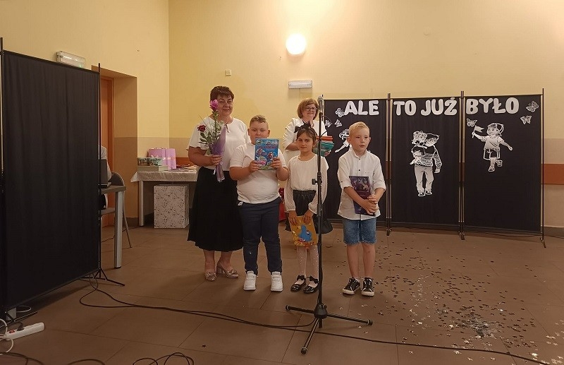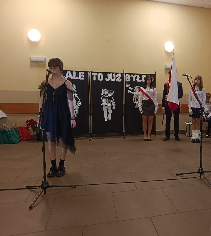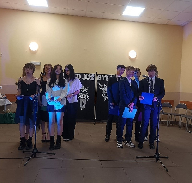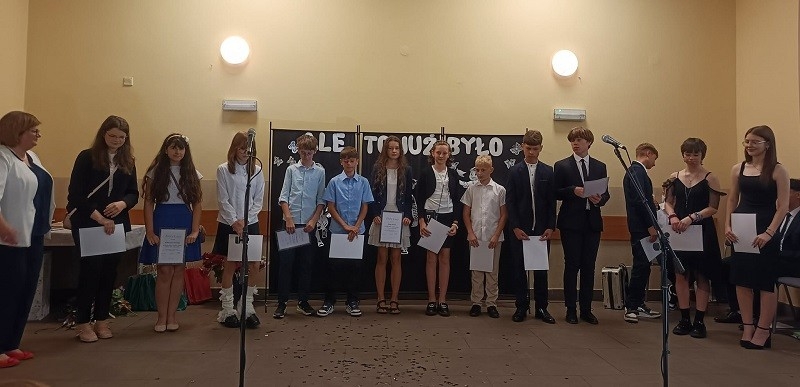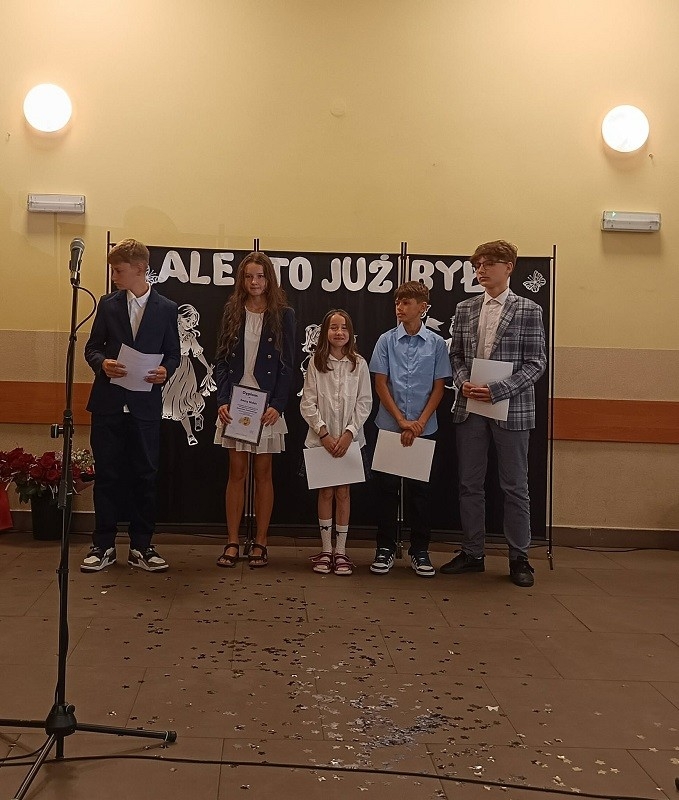 Następnie ósmoklasiści zaprezentowali się w części artystycznej pt. “Ale to już było”, którą przygotowali wraz z wychowawcą p. Elą Bartkowiak. Podczas występów publiczność na przemian wybuchała śmiechem i roniła łzy wzruszenia.