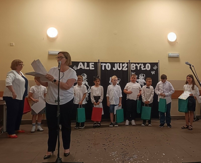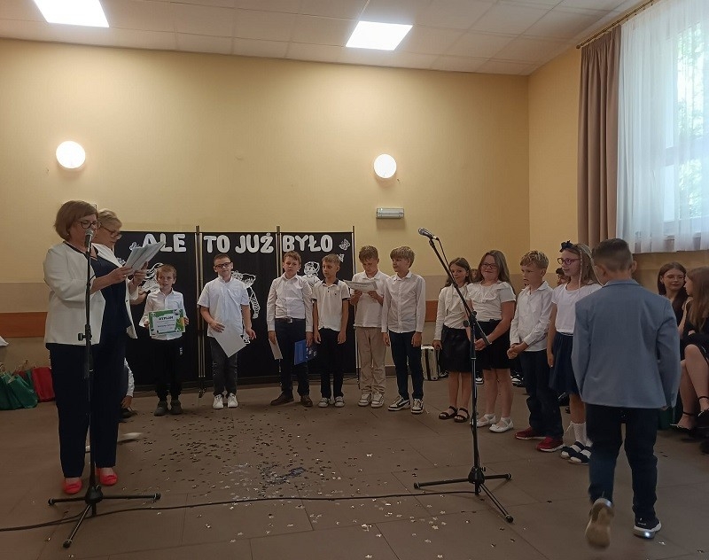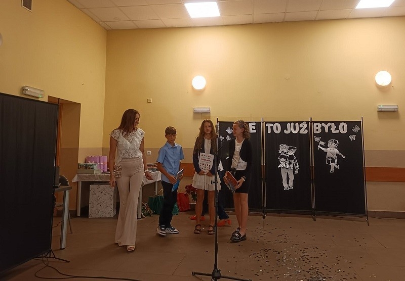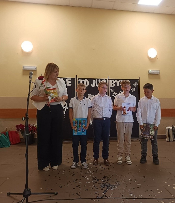 W dniu 27 czerwca br. cała społeczność szkolna, czyli uczniowie, nauczyciele, pani dyrektor, rodzice, przyjaciele szkoły oraz przybyli goście spotkali się, aby uroczyście zakończyć rok szkolny 2024/2025. Uroczystość rozpoczęła się od wspólnego odśpiewania hymnu państwowego. Na początek głos zabrała pani dyrektor Beata Fengler, która podsumowała miniony rok szkolny.
